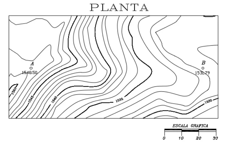 Construya el perfil longitudinal del alineamiento AB a partir de la figura